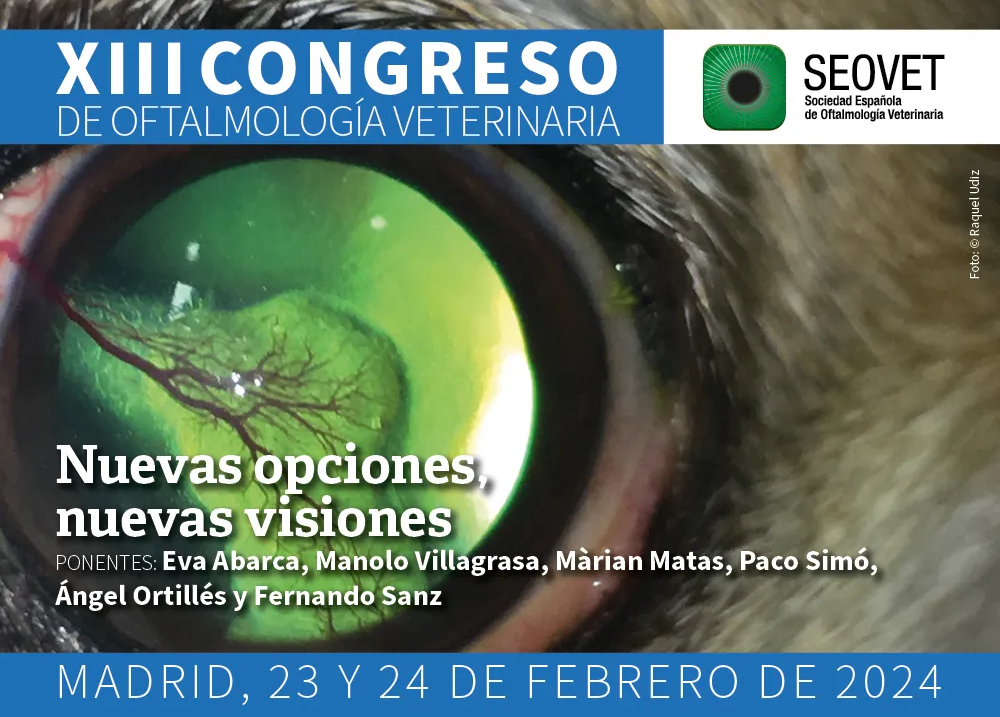 SEOVET, la Sociedad Española de Oftalmología Veterinaria, es una organización comprometida con el estudio, la investigación y el avance de la oftalmología veterinaria en España. SEOVET promueve el intercambio de conocimientos, la formación continua y la excelencia en el cuidado de la salud ocular de las mascotas a través de congresos, cursos, publicaciones y actividades educativas. Cada año, desde SEOVET se organizan ponencias, mesas redondas y discusiones centradas en aspectos relevantes para el campo, ofreciendo una plataforma para compartir conocimientos y promover el desarrollo profesional entre los especialistas veterinarios. El tema elegido para el XIII Congreso de SEOVET fue «Nuevas opciones, nuevas visiones».